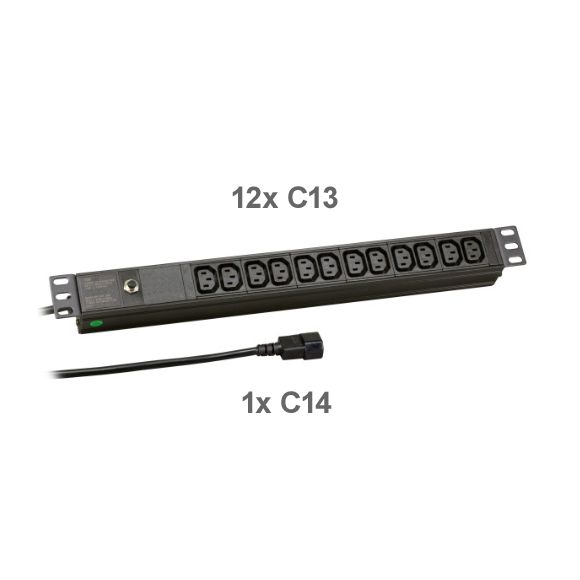- Steckdosenleiste Typ 12x C13 mit C14-Anschluskabel, z.B. für USV-Anlagen, 19" Version