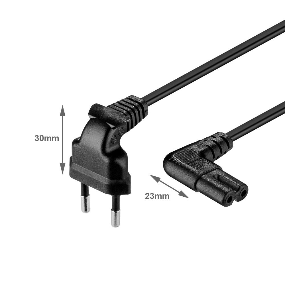 Beidseitig gewinkeltes Stromkabel für Kontinental-Europa (Deutschland, Frankreich u.a.), 50cm, 2-poliges Stromkabel mit kleinem Euro-8-Stecker, 250V (AC)