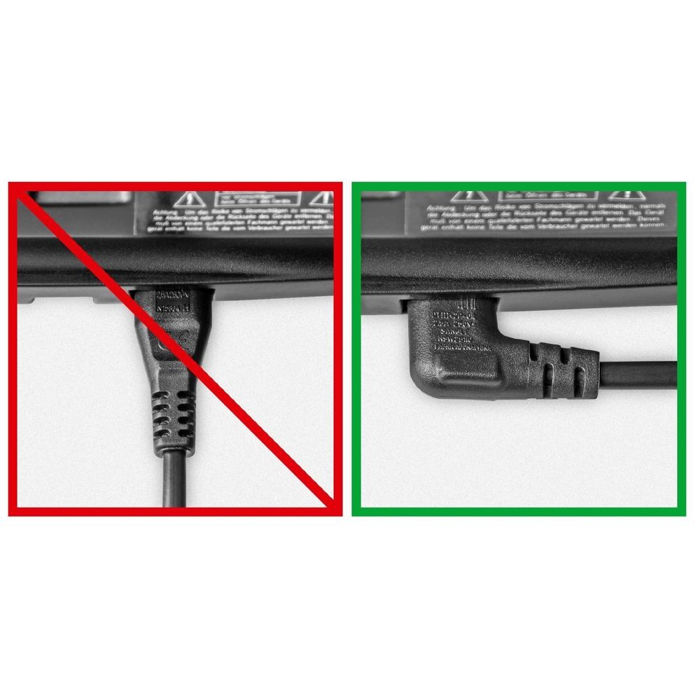 90° gewinkelter Netzstecker Das Kabel ist auf der Stromnetzseite mit einen sogenannten Eurostecker (CEE 7/16, Typ C, in Schweiz Typ 26) ausgestattet. Dieser kleine, flache Steckertyp kann mit Ausnahme vom Vereinigten Königreich, Malta, Irland und Zypern in ganz Europa eingesetzt werden. Der Stecker ist als Winkelstecker ausgeführt, der sowohl nach oben oder nach unten eingesteckt werden kann. Gewinkelte Stecker sparen Platz!