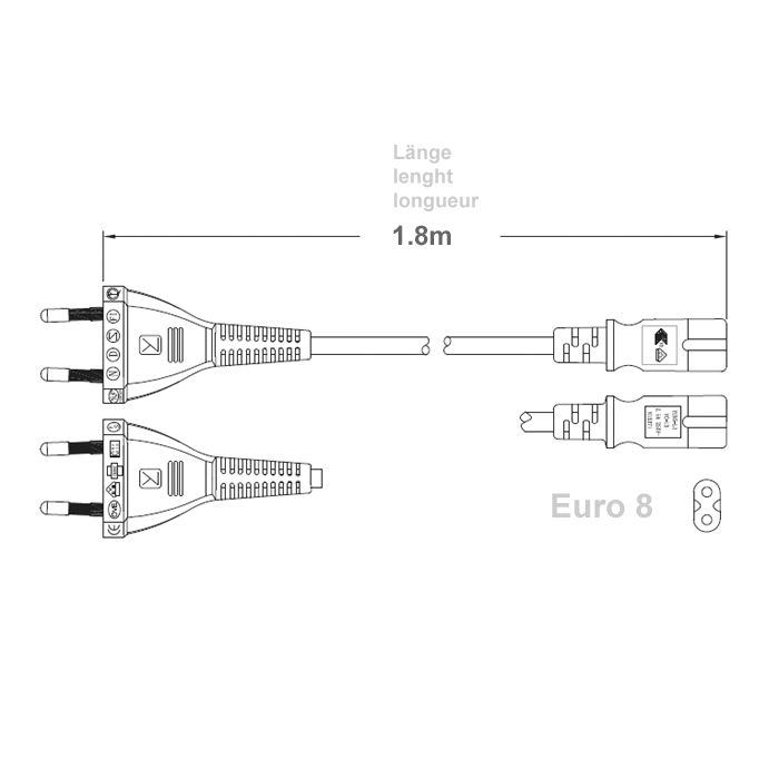 2-pol. Stromkabel mit EURO-8-Stecker LSZH 180cm