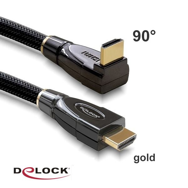 High Speed HDMI-Kabel mit 1x 90° Winkelstecker, 1m, PREMIUM-Qualität, Auflösungen bis 4K (4096x2160p), vergoldete Kontakte, mit Stoffmantel, 2x HDMI A