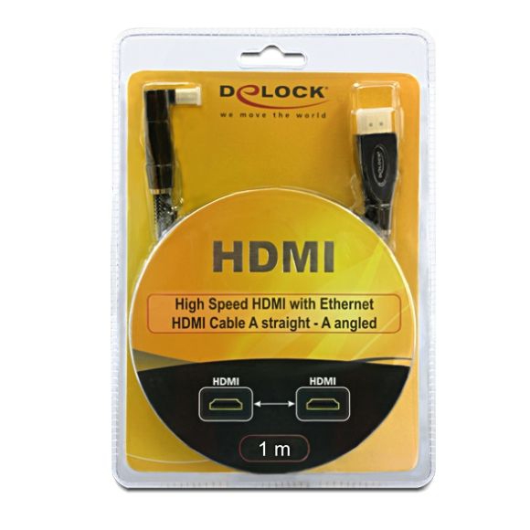 Durch den 90° abgewinkelten HDMI A Stecker eignet sich das Kabel auch an schwer zugänglichen Stellen.