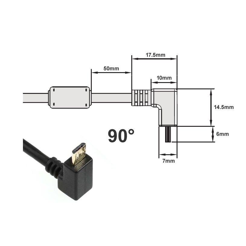 Wir bezeichnen das hier angebotene Kabel als 90° NACH OBEN gewinkelt. Ob NACH OBEN gewinkelt bei Ihrer Anwendung korrekt ist, ist aber von der Position des Micro-Buchse des USB-Gerätes abhängig. Bitte prüfen Sie daher die Ausrichtung des Micro B Ports Ihres USB-Gerätes. Die Micro B Buchse ist trapezförmig und hat leicht abgerundete Ecken.