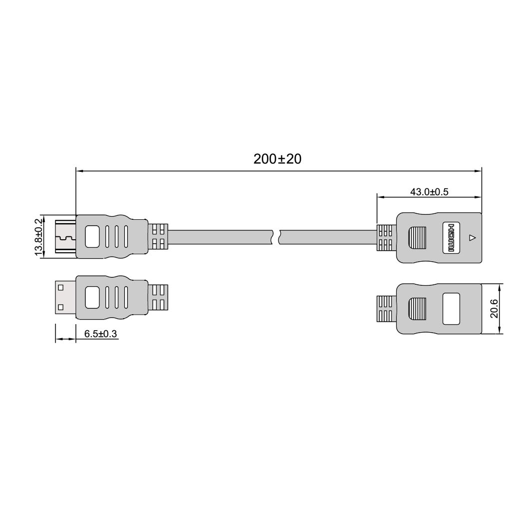 - HDMI Typ C (19pin) Stecker auf HDMI Typ A (19pin) Buchse