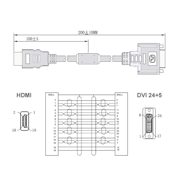 Produktinformationen "Adapterkabel HDMI-Stecker auf DVI-I-Buchse 24+5, 20cm"