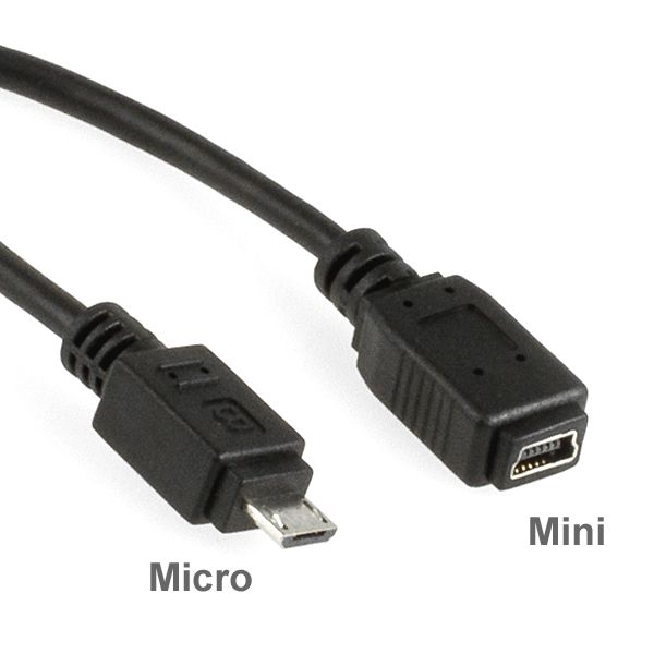 Das Adapterkabel hat auf der einen Seite eine USB 2.0 Mini B Buchse. Auf der anderen Seite befindet sich ein Micro B Stecker.