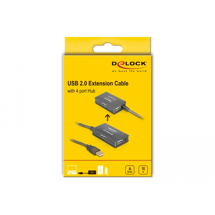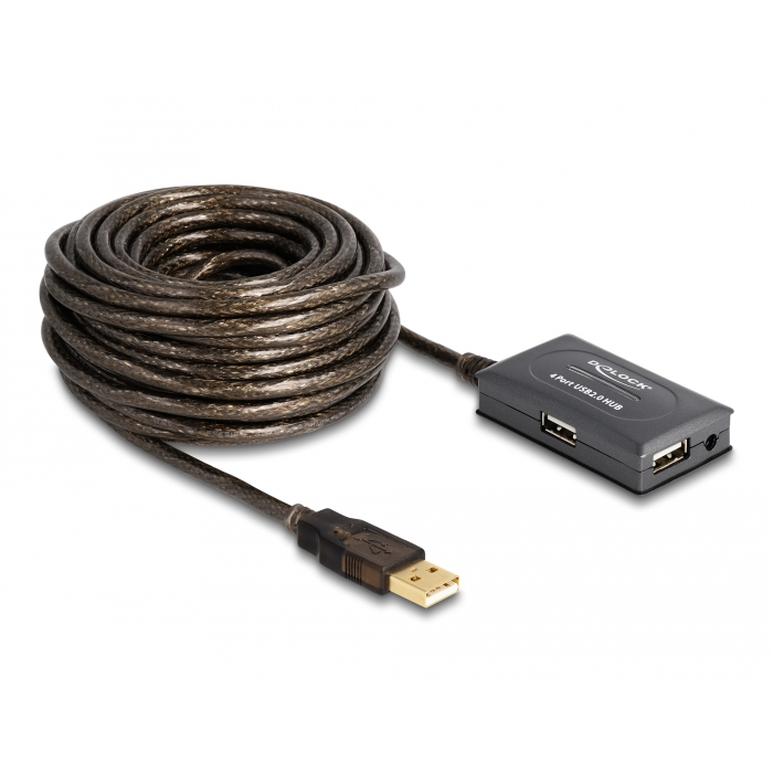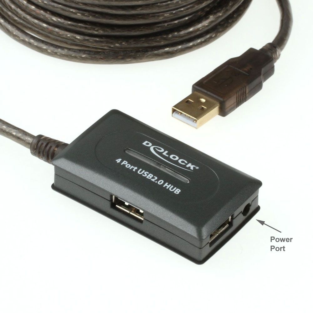 Dieses Verlängerungskabel von Delock können Sie an den USB Port Ihres Computers anschließen und die Schnittstelle um 10 m verlängern. An den Hub lassen sich bis zu vier USB Geräte anschließen. Sollten diese USB Geräte keine eigene Stromversorgung haben, benötigen Sie ggf. ein zusätzliches Netzteil.