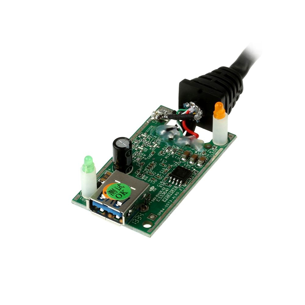 Kabelmaterial High-End von Copartner. Nach unserer Überzeugung gibt es zur Zeit nichts besseres für USB 3.0. Auch wir lassen unsere USB-3.0-Kabel mit Copartner-Material herstellen. Zwei LEDs für Power und Link, damit man weiss, was passiert. Intern ist die Platine aufwendig und sehr sauber aufgebaut.