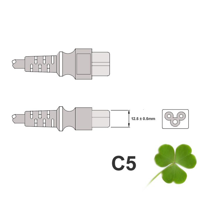 - Stecker 2: C5 (Typ Kleeblattstecker IEC-60320 C5)