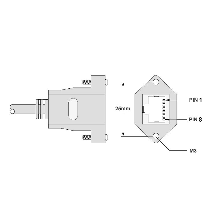 - Anschluss 1: RJ45-Buchse anschraubbar (8P8C)