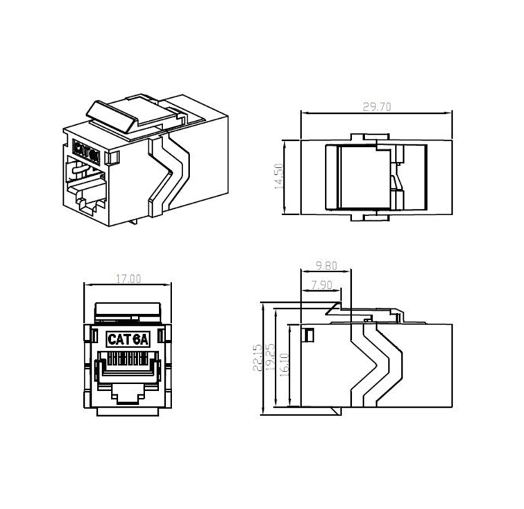 - alternative Produktbezeichnungen: RJ45 Gehäusedurchführung, RJ45 Rack Mount, RJ45 Panel Mount, Cat.6A Feed Through