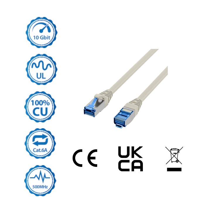 Produktinformationen "Cat.6A UL approbiertes Patchkabel 500Mhz 10Gbps grau 1m"