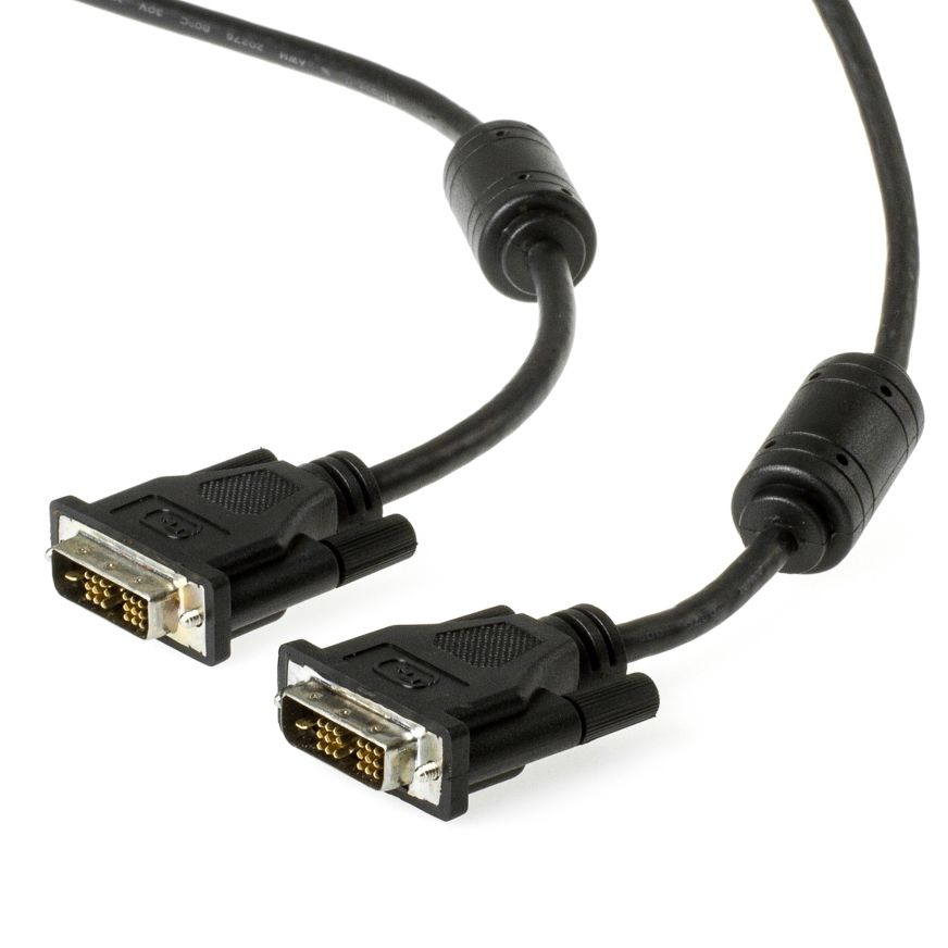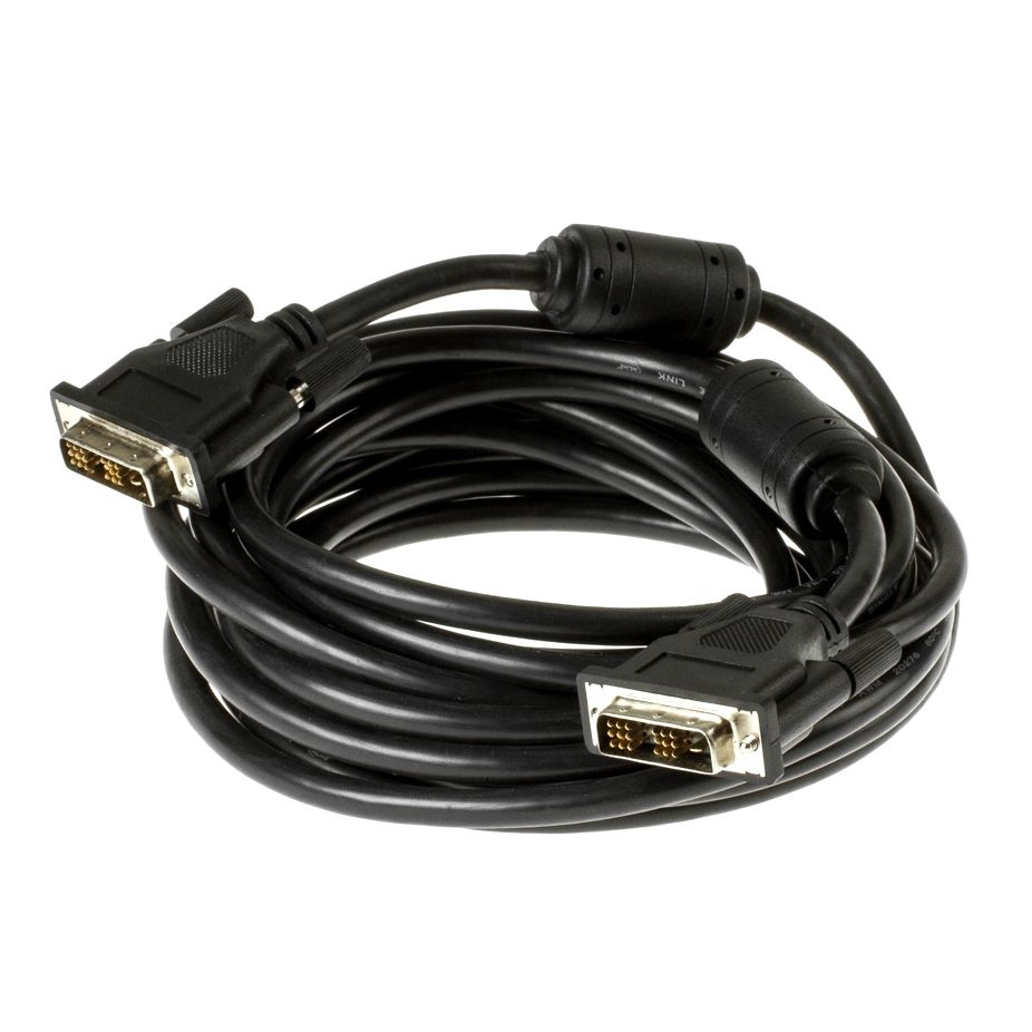 DVI-Monitorkabel 5m, Typ: DVI-D SINGLE LINK rein digital, beidseitig DVI 18+1-Stecker (2x 9 Pins + 1 Flachkontakt), mit 2 Ferritkernen
