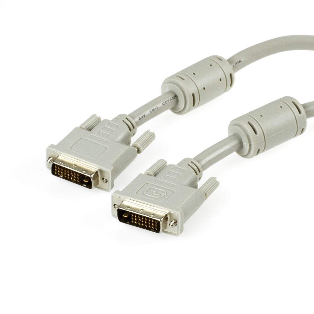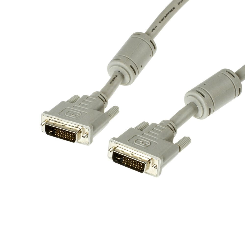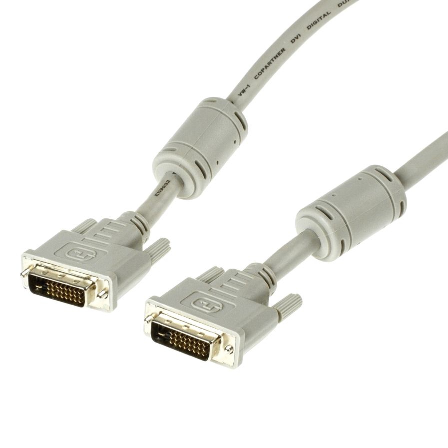 DVI-Monitorkabel, EXTRA KURZ: 1m, Typ: DVI-D DUAL LINK rein digital, beidseitig DVI 24+1-Stecker (3x8 Pins in 3 Kontaktreihen + 1 Flachkontakt), Farbe: grau-beige