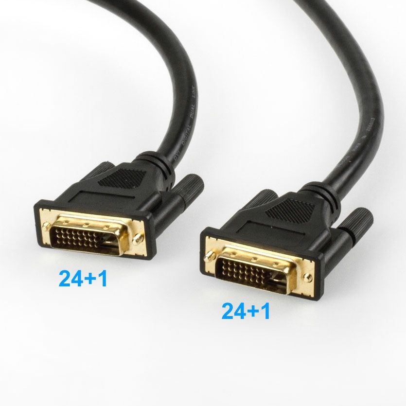 Das Kürzel 24+1 bezeichnet die Anzahl und Art der Kontaktstifte des DVI-Steckers. Ein rein digitaler Dual Link Stecker hat 24 kleine Stifte. Diese sind auf 3 Reihen (3x8=24) verteilt. Zudem besitzt der 24+1 Stecker seitlich einen größeren Flachkontakt (Kürzel +1).