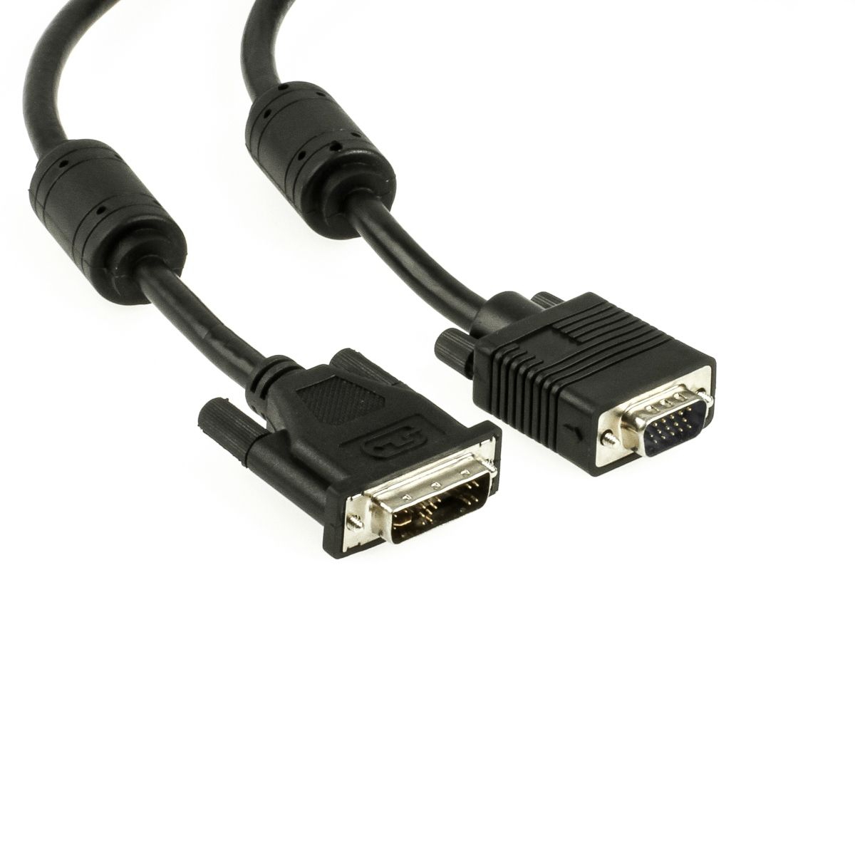 DVI-VGA Monitor-Adapterkabel, DVI-Stecker (Schrauben) an HD-DSub-15-Stecker (VGA männlich, Schrauben), rein analoge Displayverbindung, 5m