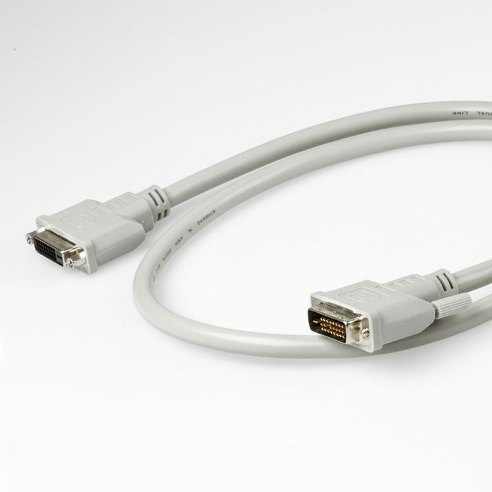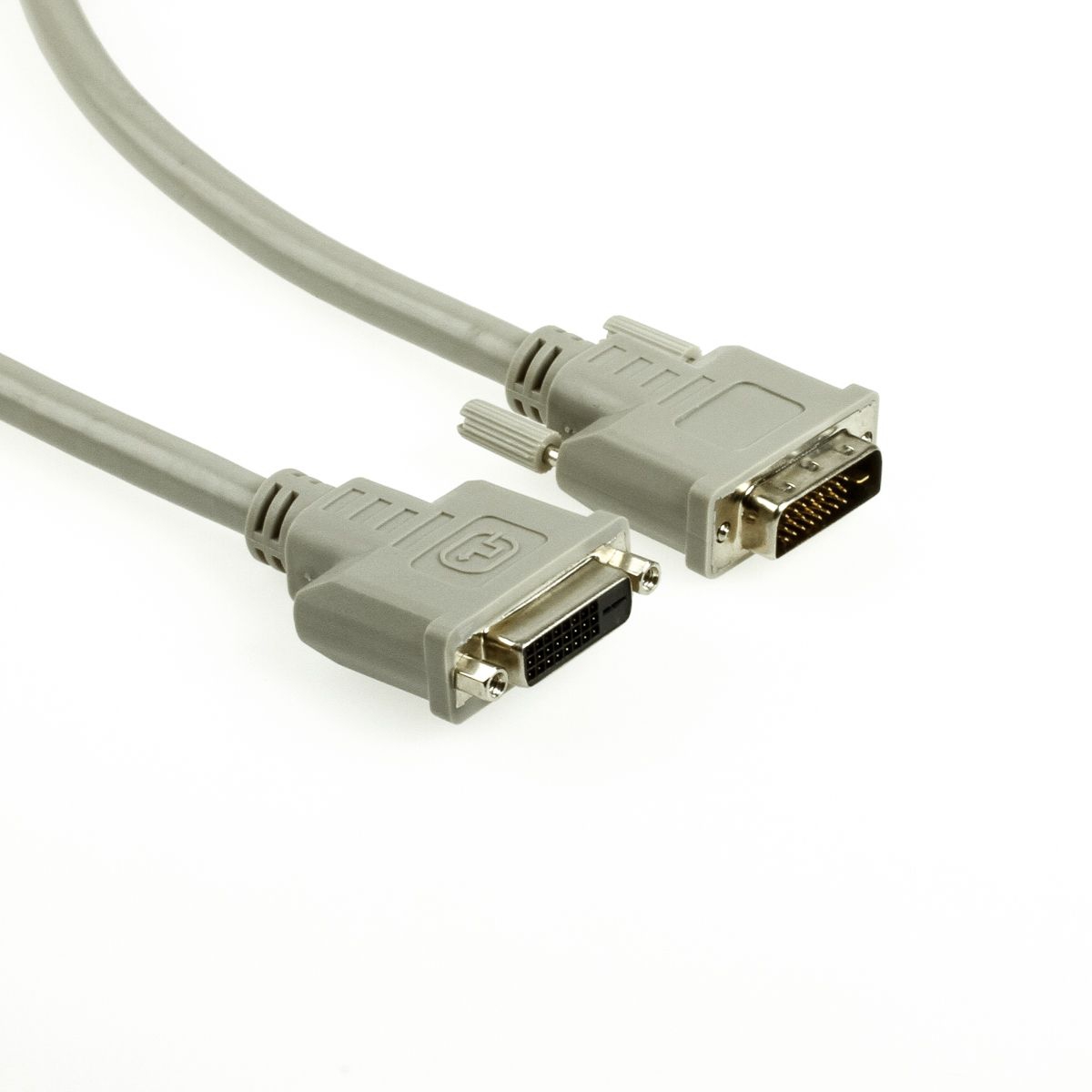 DVI-Verlängerungskabel 1m, Typ: DVI-D DUAL LINK rein digital, DVI 24+1-Stecker/Buchse (3x8 Pins in 3 Kontaktreihen + 1 Flachkontakt), Farbe: grau