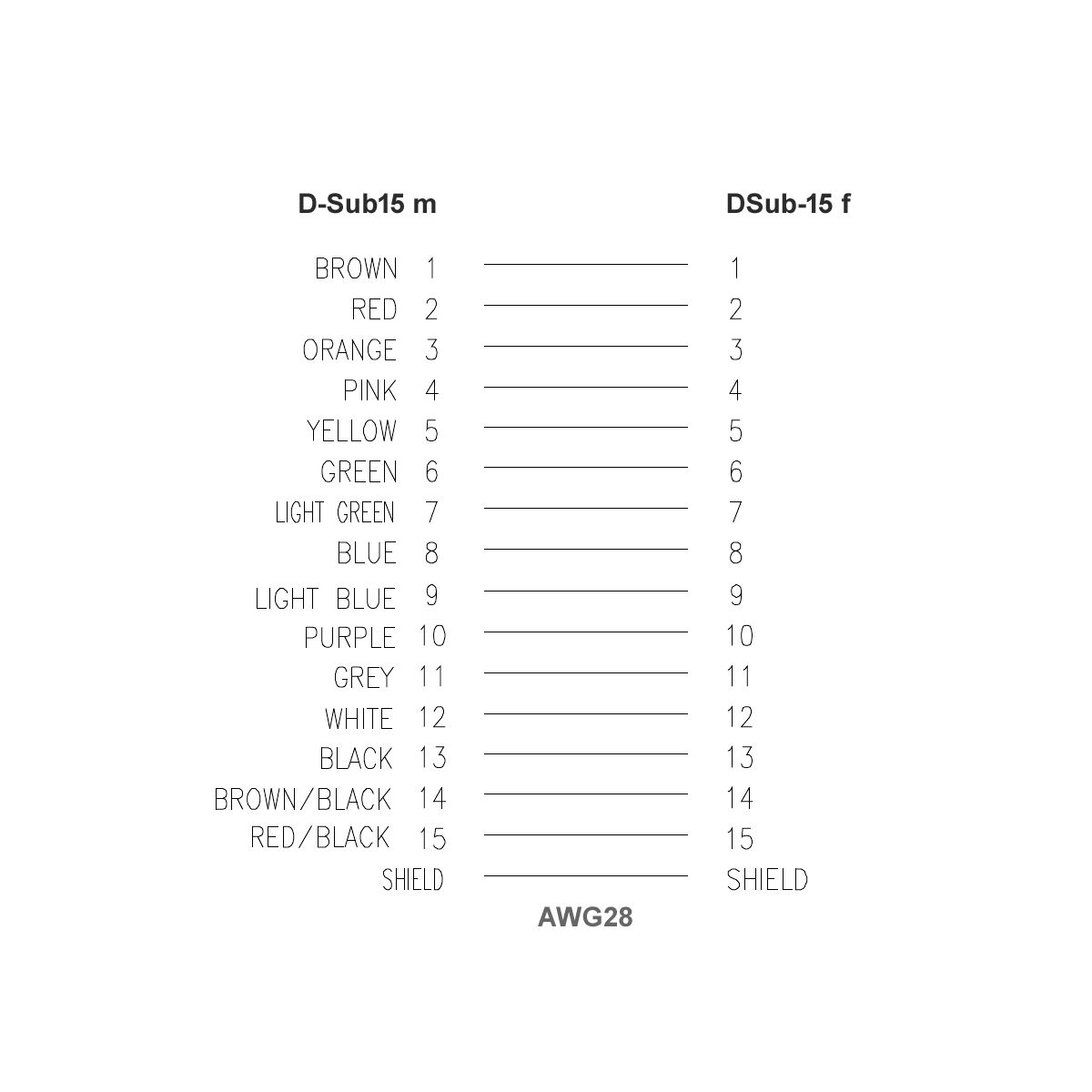 - alle 15 Kontakte 1-zu-1 verbunden: 1-1, 2-2, 3-3 ... 15-15