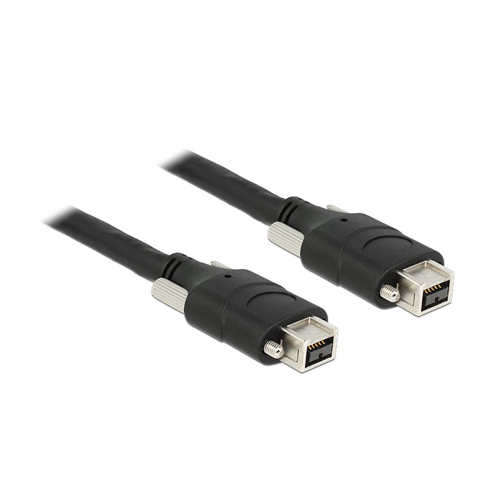 Anschraubbares Firewire 800 Kabel (IEEE-1394b), 2m, 9-polig auf 9-polig (Beta/Beta), 800 MBit/s (S800), beidseitig Handrändel-Schrauben (M3x0.5), schwarz