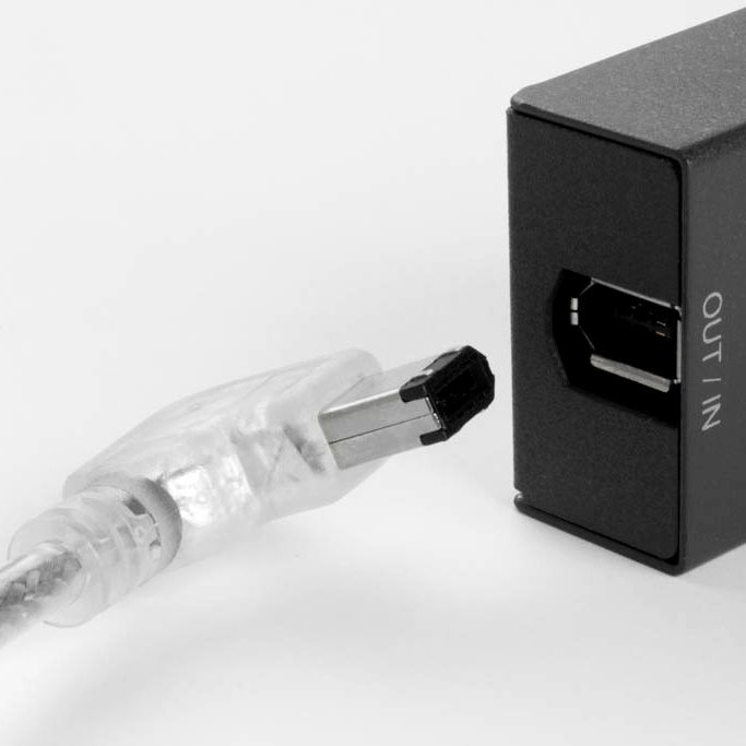 Das Besondere an diesem Firewirekabel ist der um 90 Grad abgewinkelte Firewirestecker.