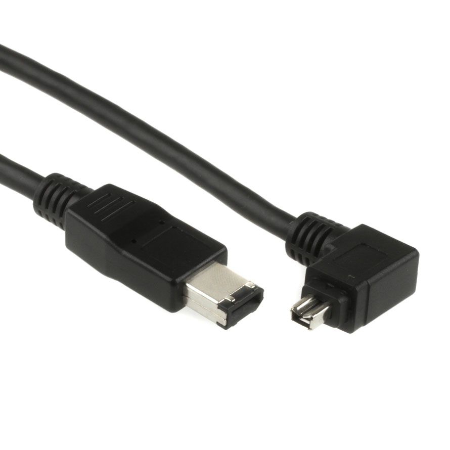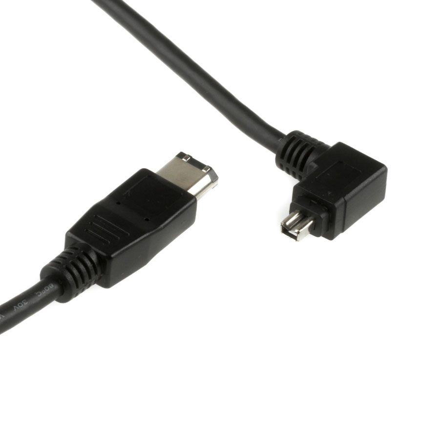 Dieses speziell für uns gefertigte Firewirekabel verfügt über einen 4- und einen 6-poligen Stecker. Das Besondere ist der nach links abgewinkelte 4-polige Stecker. Dadurch kann das Kabel besonders gut bei beengten Platzverhältnissen an der 4-poligen Firewire-Buchse eingesetzt werden. Ausserdem lässt sich der abgewinkelte Stecker deutlich besser gegen ein Herausrutschen fixieren als ein gerader Stecker.