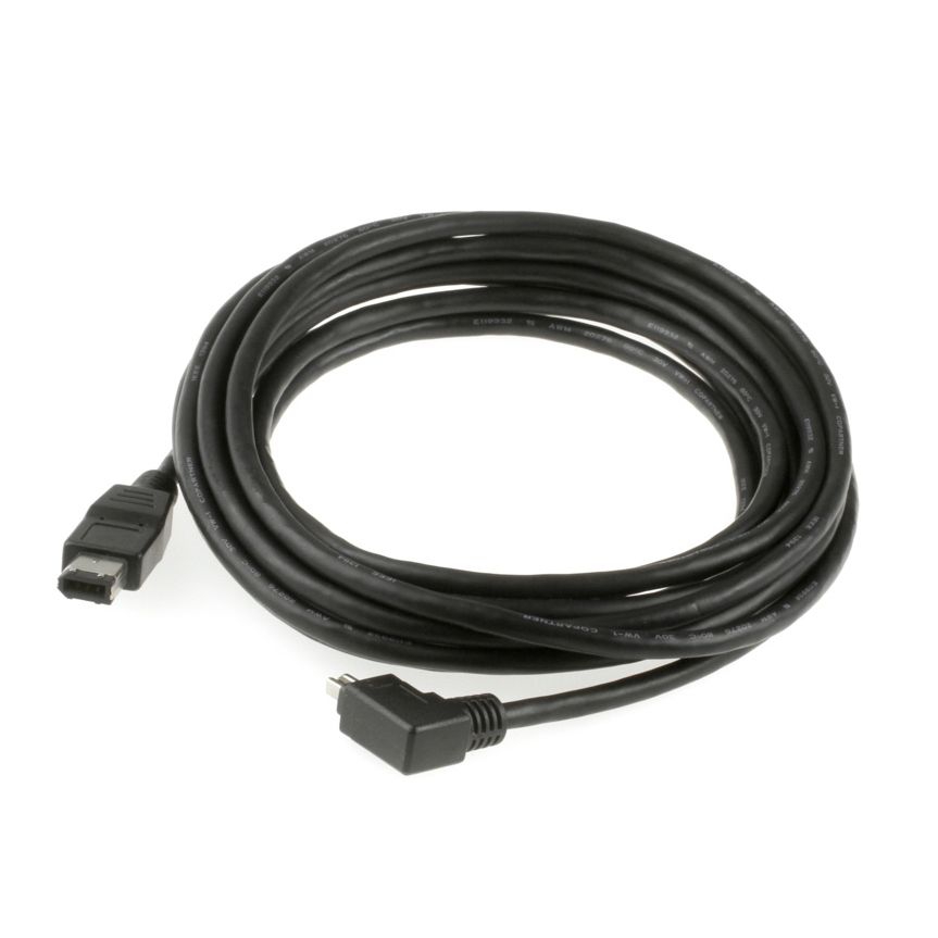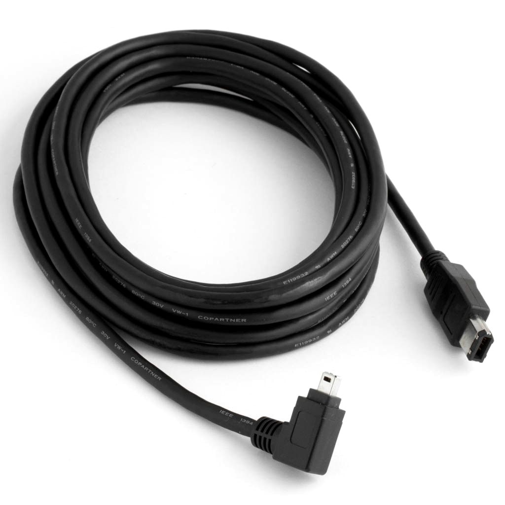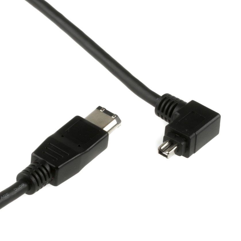 Dieses speziell für uns gefertigte Firewirekabel verfügt über einen 4- und einen 6-poligen Stecker. Das Besondere ist der nach links abgewinkelte 4-polige Stecker. Dadurch kann das Kabel besonders gut bei beengten Platzverhältnissen an der 4-poligen Firewire-Buchse eingesetzt werden. Ausserdem lässt sich der abgewinkelte Stecker deutlich besser gegen ein Herausrutschen fixieren als ein gerader Stecker.