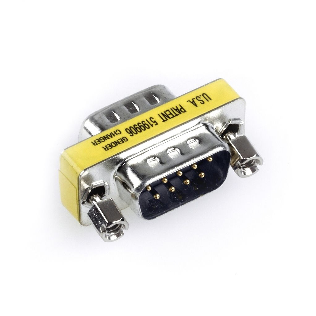 Dieser Adapter wird dazu verwendet, einen 9-poligen DSub-Anschluß von Buchse in Stecker umzuwandeln. Buchsen (Kontaktlöcher) werden auch als weibliche und Stecker (Stifte) als männliche Verbindungen bezeichnet. Damit ist der Adapter quasi ein Geschlechtswandler, engl. "Gender Changer". Aus einen Stecker/Buchse-Kabel kann mittels des Adapters eine Stecker/Stecker-Verbindung realisiert werden.