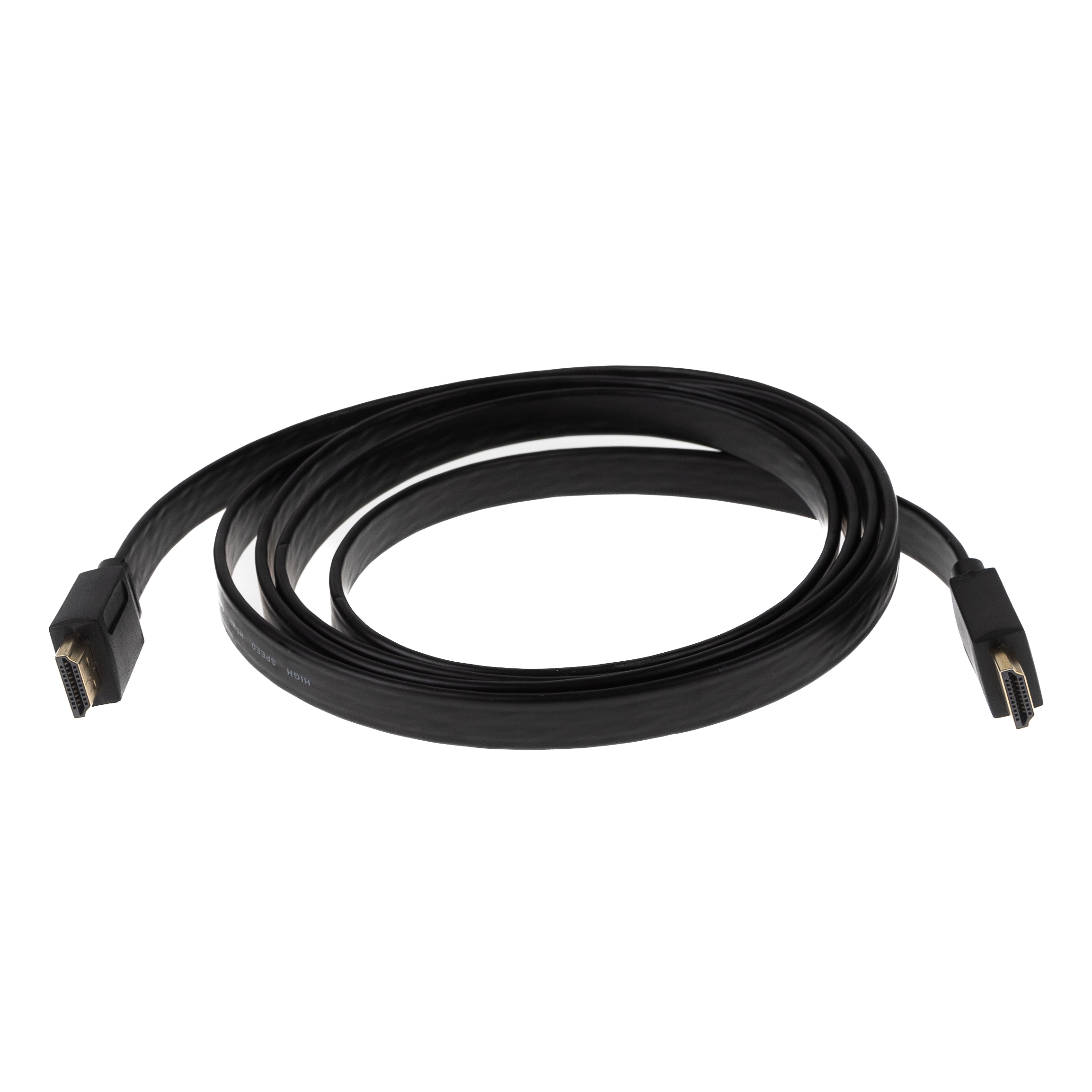 HDMI-Flachkabel für platzsparende Verlegung, beidseitig 19-poliger HDMI-Stecker (A), Übertragung von Video- u. Audio-Signalen (rein digital), mit Ethernet, schwarz, Länge: 5m
