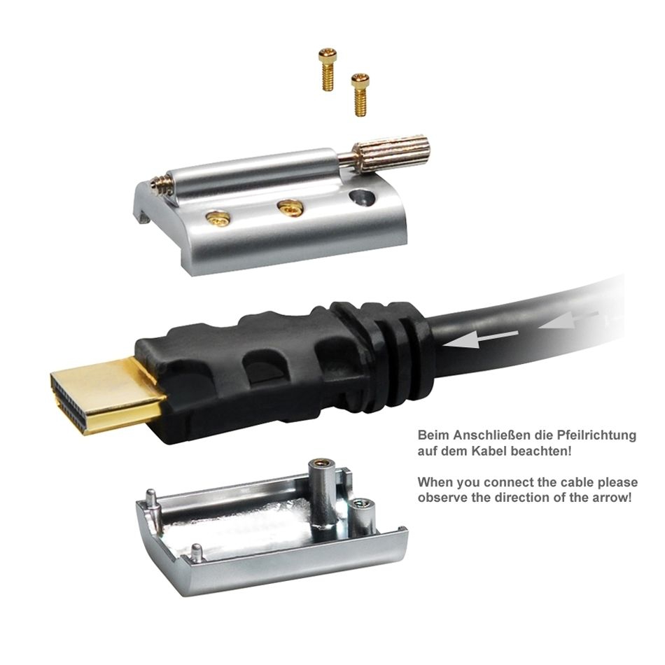 WICHTIGER HINWEIS: Die interne Elektronik des Kabel funktioniert nur, wenn das Kabel in einer bestimmten Weise eingesteckt wurde. Bitte daher die Einsteckrichtung des Kabels beachten. Diese ist mit Pfeilen auf dem Kabel gekennzeichnet. Falls das Kabel nicht funktioniert, bitte umgedreht einstecken.