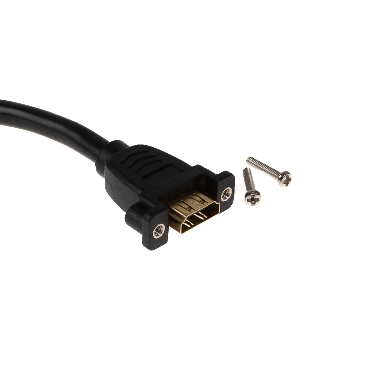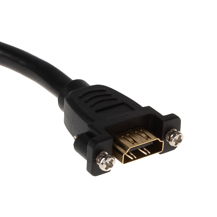 HDMI Panel Montagekabel, A Buchse anschraubbar an A Stecker, 4K2K, 20cm, 2 Schrauben inkl., kompatibel zu HDMI High Speed mit Ethernet