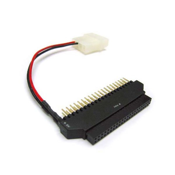 Dieser IDE-Adapter ermöglicht den Anschluss von 2.5"-Festplatten an IDE-Controllern mit 3.5"-Anschlüssen, wie sie in normalen PCs zu finden sind. Der Adapter wird mit der 40-poligen-Seite an ein normales IDE-Kabel angeschlossen. Die 44-polige-Buchse wird direkt bei der 2.5"-Festplatte eingesteckt. Die Stromversorgung der Festplatte erfolgt über einen am Adapter angebrachten Stromanschluss.
