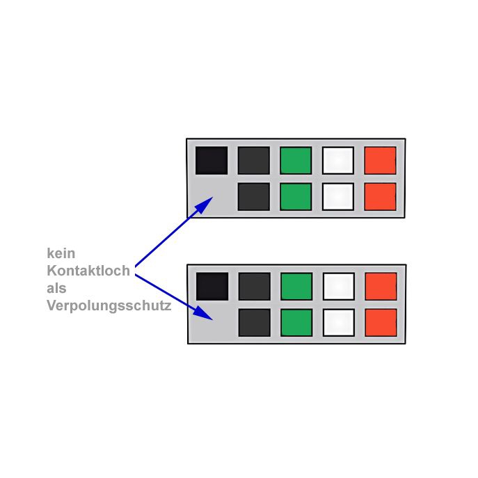 - je Stecker 1 Kontaktloch vergossen als Verpolungsschutz