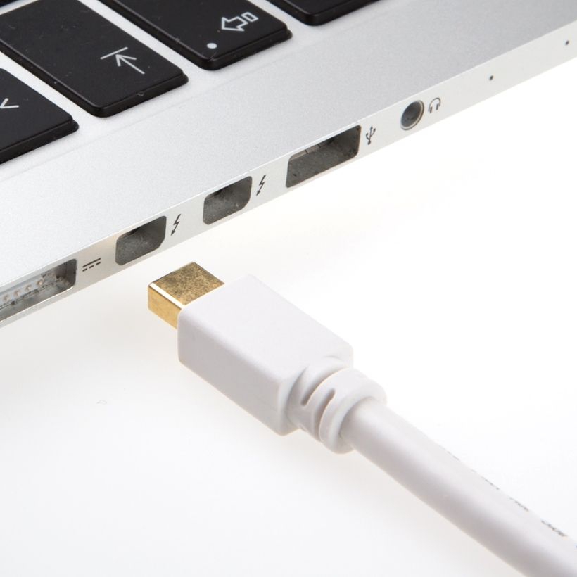 ... kann das Kabel auch bei der Thunderbolt™-Schnittstelle einsteckt werden, weil diese Schnittstellen-Technik rückwärtskompatibel zum Mini DisplayPort ist.