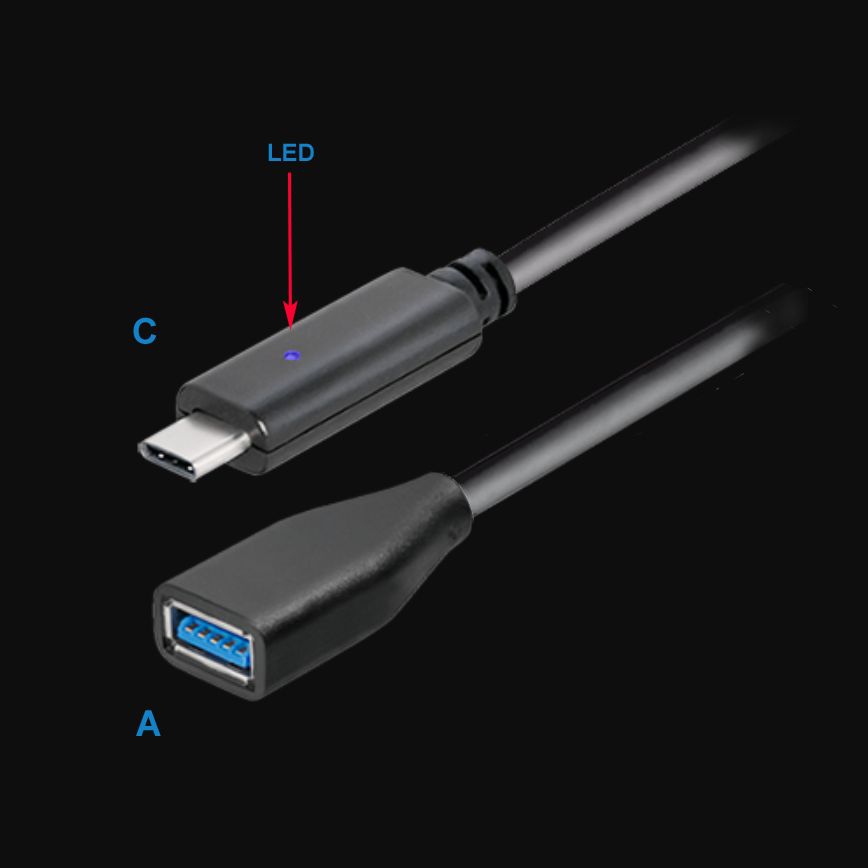 Kabel USB 3.1 Type C Stecker mit LED auf USB 3.0 A Buchse, 20cm, schwarz