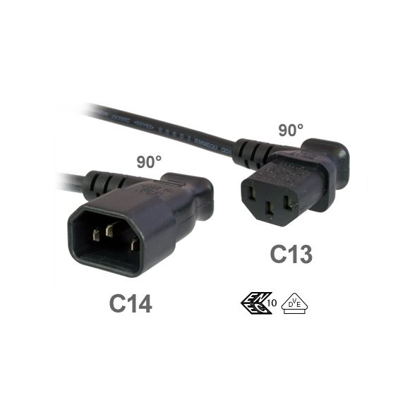- 90° Kaltgeräte-Winkelstecker auf 90° Kaltgeräte-Winkelbuchse (C14 auf C13)