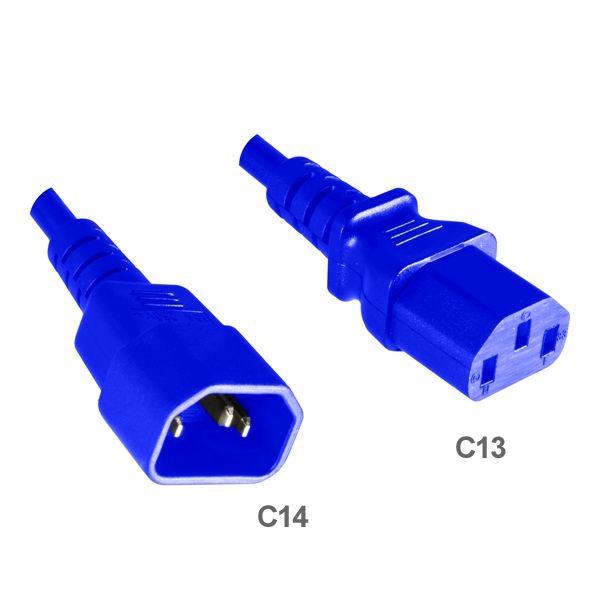 Kaltgeräte-Verlängerungskabel C13-C14 in BLAU 1m