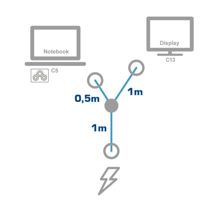 - Beispielanwendung: Monitor (C13) und Notebook (C5) an einer Steckdose anschließen