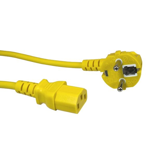 Kaltgerätekabel GELB mit Stecker CEE 7/7 90°-WINKEL an C13, 180cm