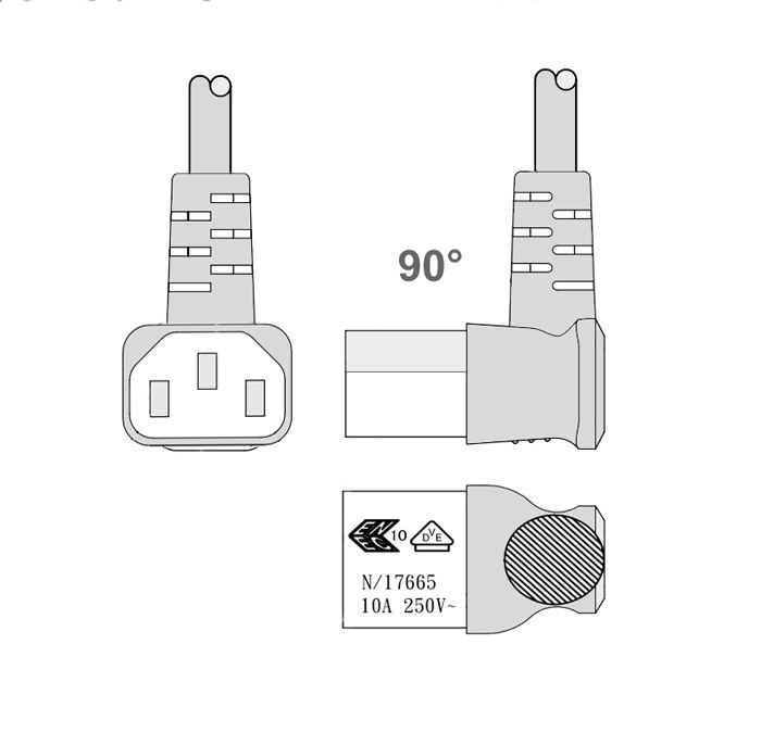 Kaltgerätekabel USA Canada C13 NACH OBEN abgewinkelt 180cm