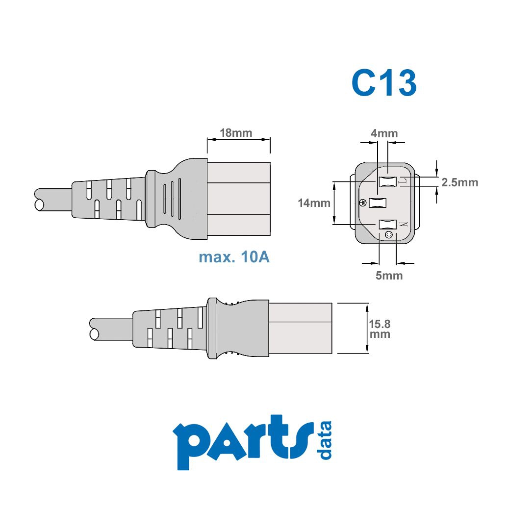 - Kaltgerätekabel / Stromkabel / Netzkabel mit C13-Stecker für Deutschland, Frankreich und Kontinental-Europa