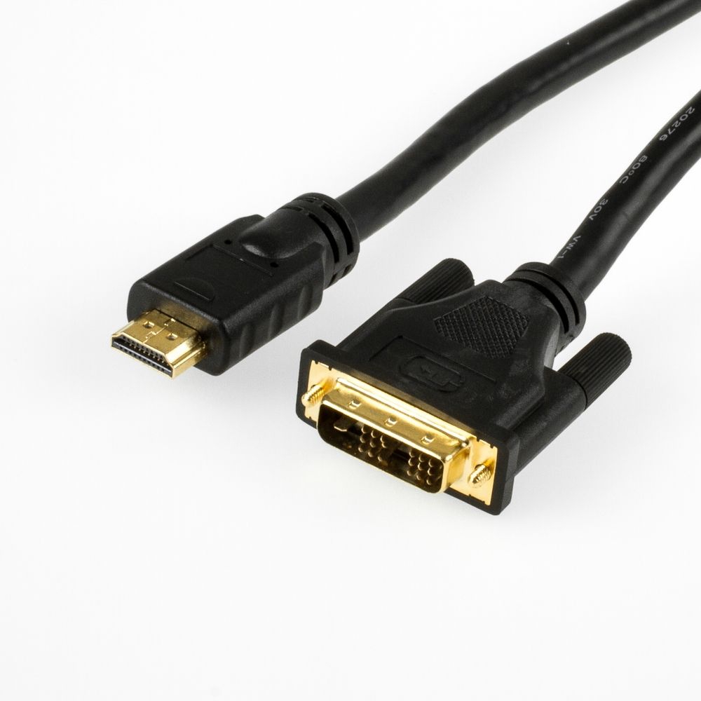 Kabel HDMI zu DVI, extra kurz: 50cm, HDMI-A-Stecker (19-polig) an DVI-D-Stecker (18+1 polig), Premium-Qualität, vergoldete Kontakte, 2x geschirmt, rein digital, Farbe: schwarz