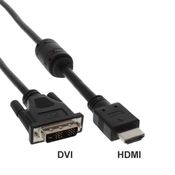 Ein Display mit HDMI-Port wird an die Grafikkarte des PCs mit DVI-Port angeschlossen. Dabei ist es ebenfalls nicht von Bedeutung, ob Ihr PC exakt die gleiche DVI-Buchse (18+1) hat. Der PC kann die Buchsenvariaten 24+1 (24 Kontaktlöcher + 1 Schlitzkontakt) oder 24+5 (24 Kontaktlöcher + 1 Schlitzkontakt + 4 Kontaktlöcher) besitzen. Das hier angebotene 18+1-Kabel passt und funktioniert