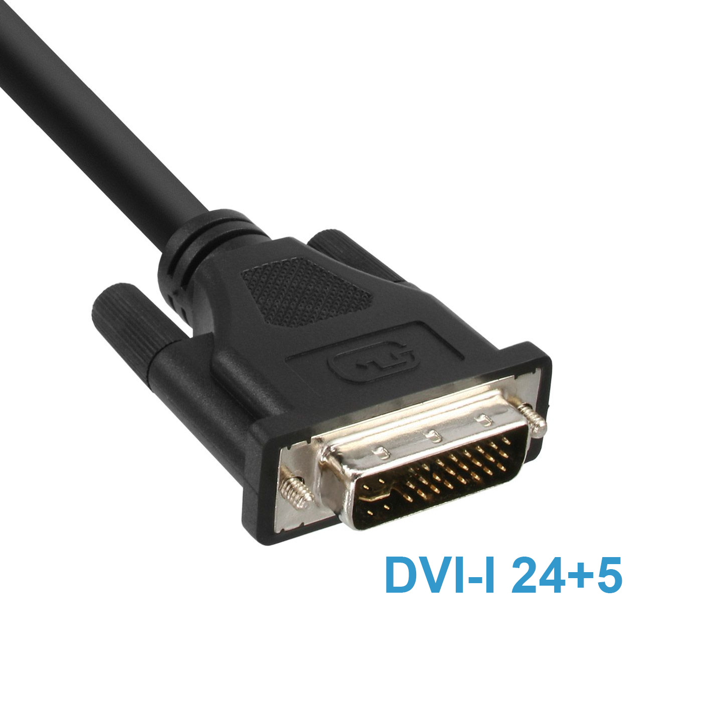 Die Besonderheit dieses DVI-I-Kabels ist die Ausstattung mit voll belegten DVI-Steckern. Das Kürzel 24+5 steht für 3x8 Pins in 3 Kontaktreihen + 1 Flachkontakt + 4 Pins (2 oberhalb und 2 unterhalb des Flachkontaktes).