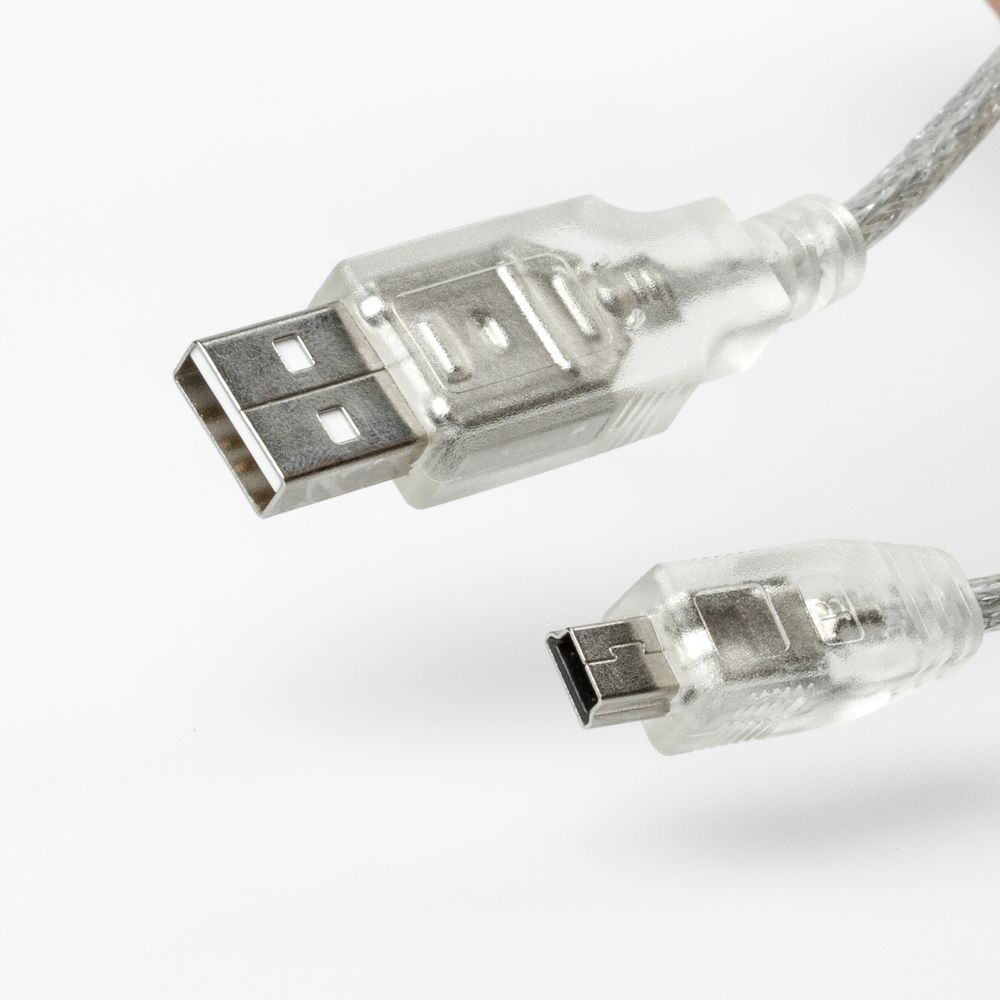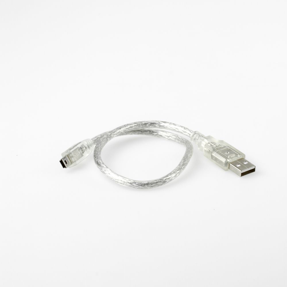 Kurzes Mini B USB-Kabel PREMIUM silber-transparent 35cm