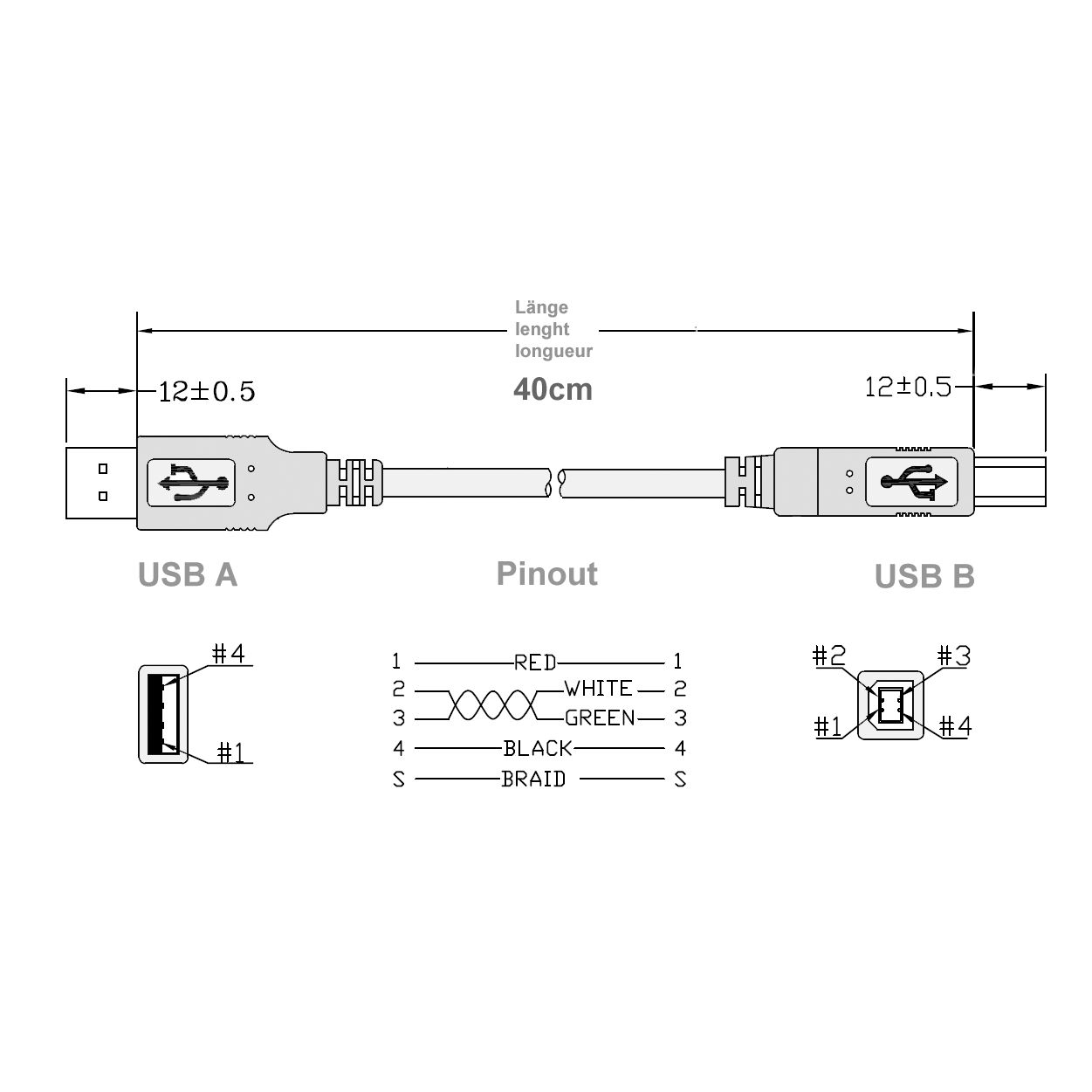 Produktinformationen "Kurzes USB-Kabel PREMIUM-QUALITÄT USB 2.0 A-auf-B silber-transparent 40cm"