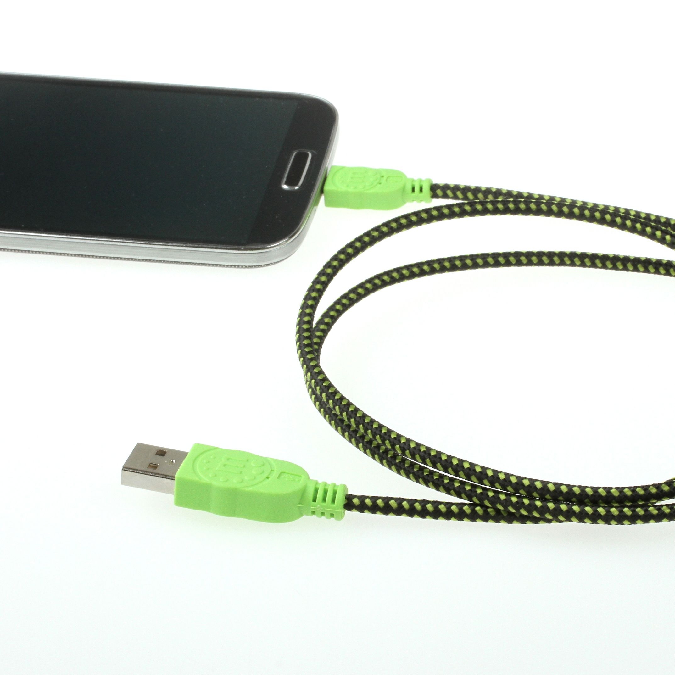 Produktinformationen "Micro-USB-Kabel mit Stoffmantel grün-schwarz 1m"