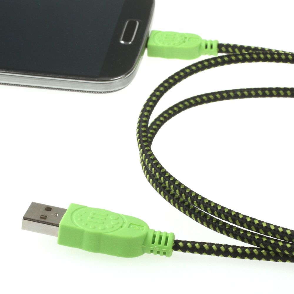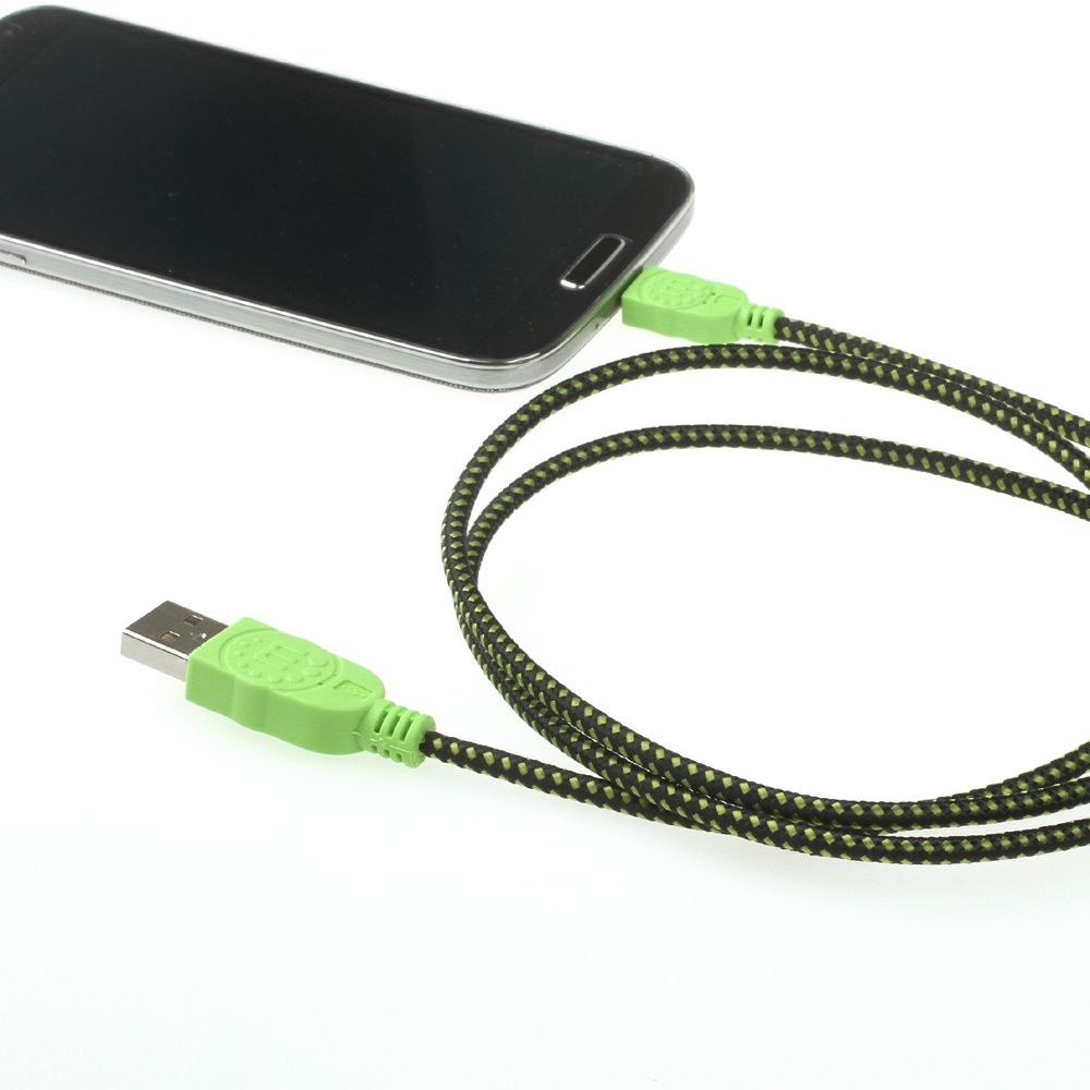 Micro-USB-Kabel mit Stoffmantel grün-schwarz 1m