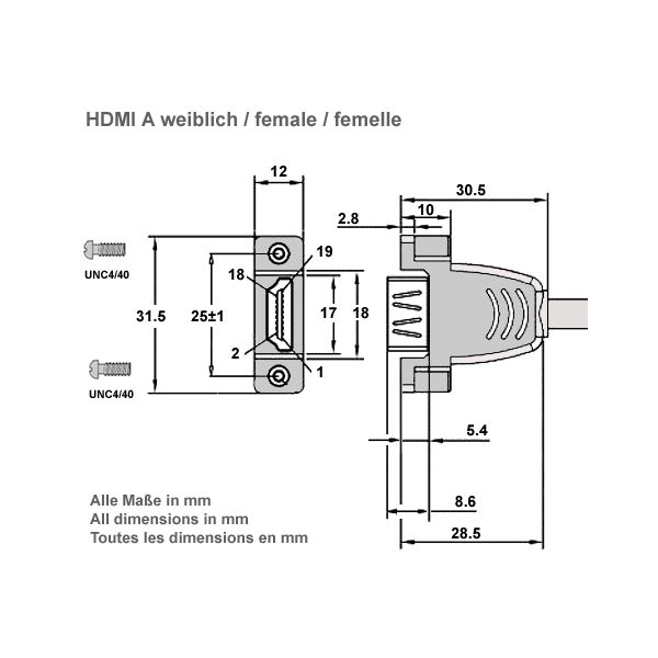 1x anschraubbare HDMI Buchse