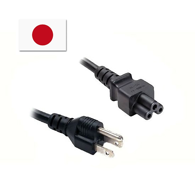 Notebook-Stromkabel für Japan, japanischer Stecker an 3-poligen Notebook-Stecker C5 (3 kreisrunde Kontakte als V angeordnet), 3G x 0,75mm², schwarz