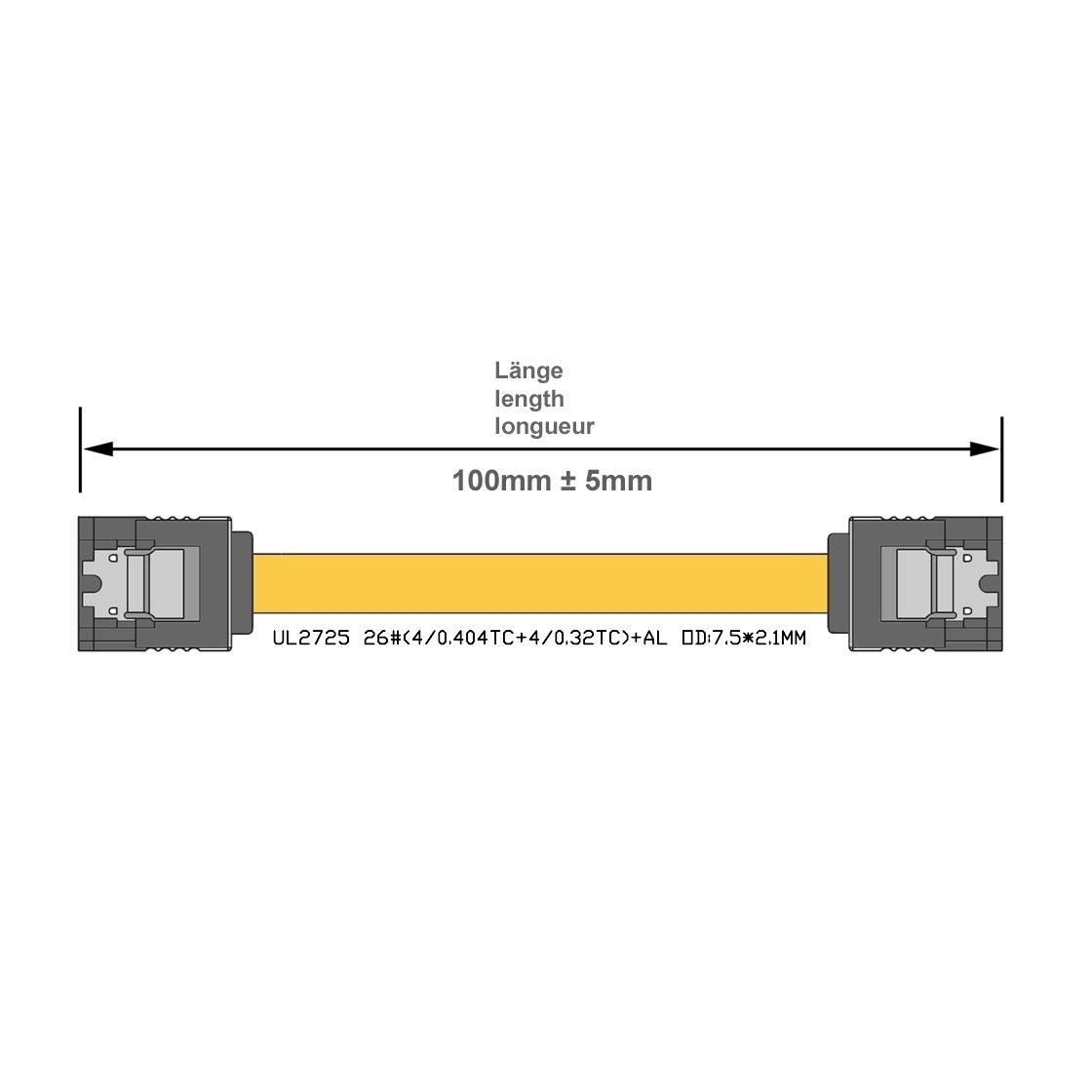 SATA-Kabel, 10cm, beidseitig gerader SATA-Stecker (mit Metall-Klipps für besseren Halt), SATA 150 / SATA 300 (3Gbps), internes Kabel (Serielles ATA, Serial ATA, S-ATA)